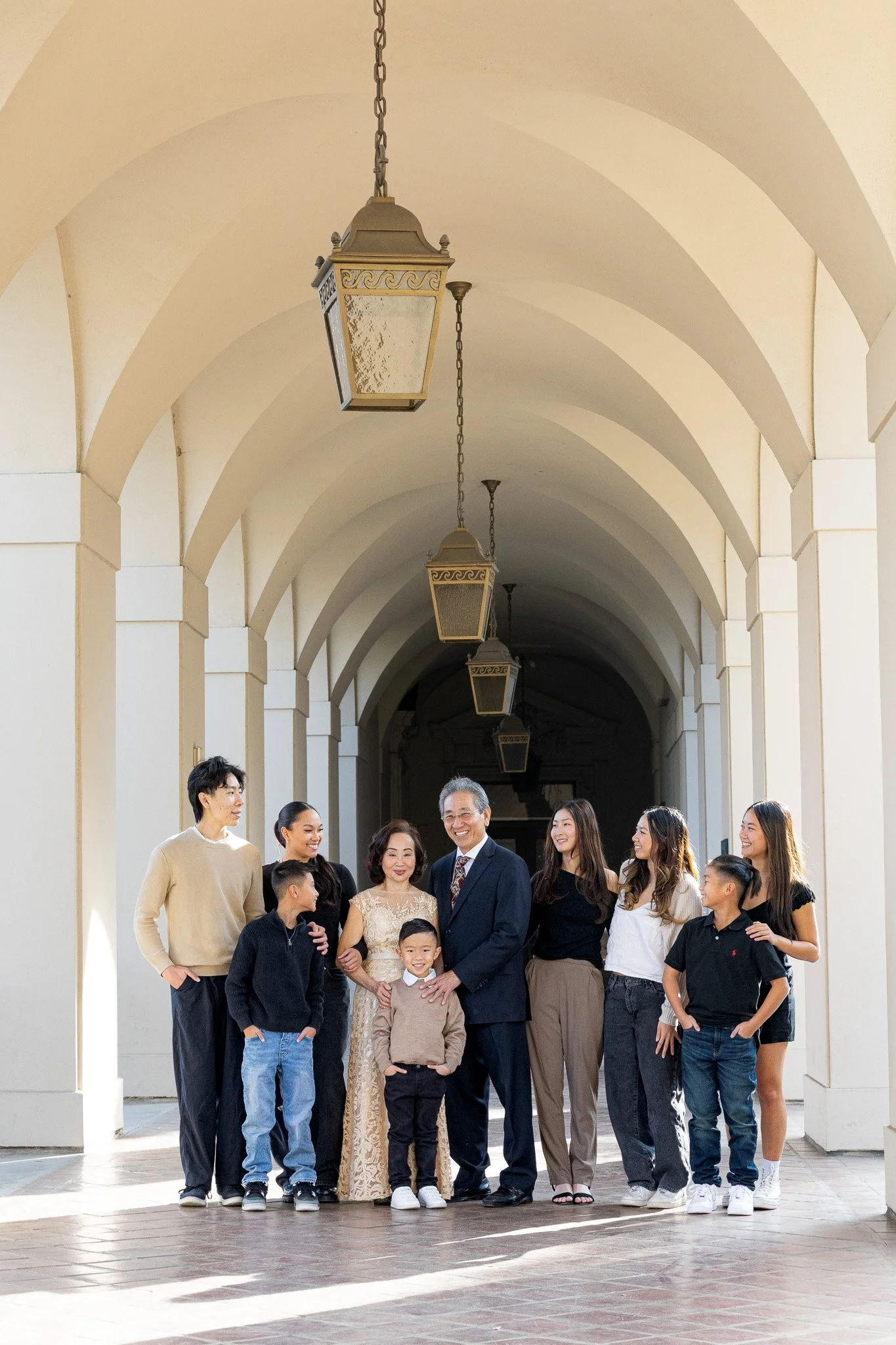 Pasadena City Hall is one of my favorite places to photograph families. The light is always so soft and lovely at all hours of the day, the architecture is a gorgeous backdrop for any sort of portrait session, and the airy outdoor courtyard space can even accommodate large extended families. I have even discovered that families with mobile littles tend to have an especially fun time actively running amok throughout the city hall grounds. I always get a great workout chasing mentioned highly energized littles and I always leave with a joy-filled photog heart after photo sessions at this lovely Pasadena location.